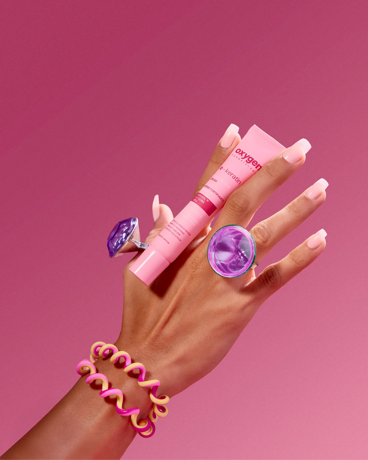 Helps to avoid splitting caused by the abuse of colored nail polishes, hardeners with formaldehyde, acetone removers and metal files.